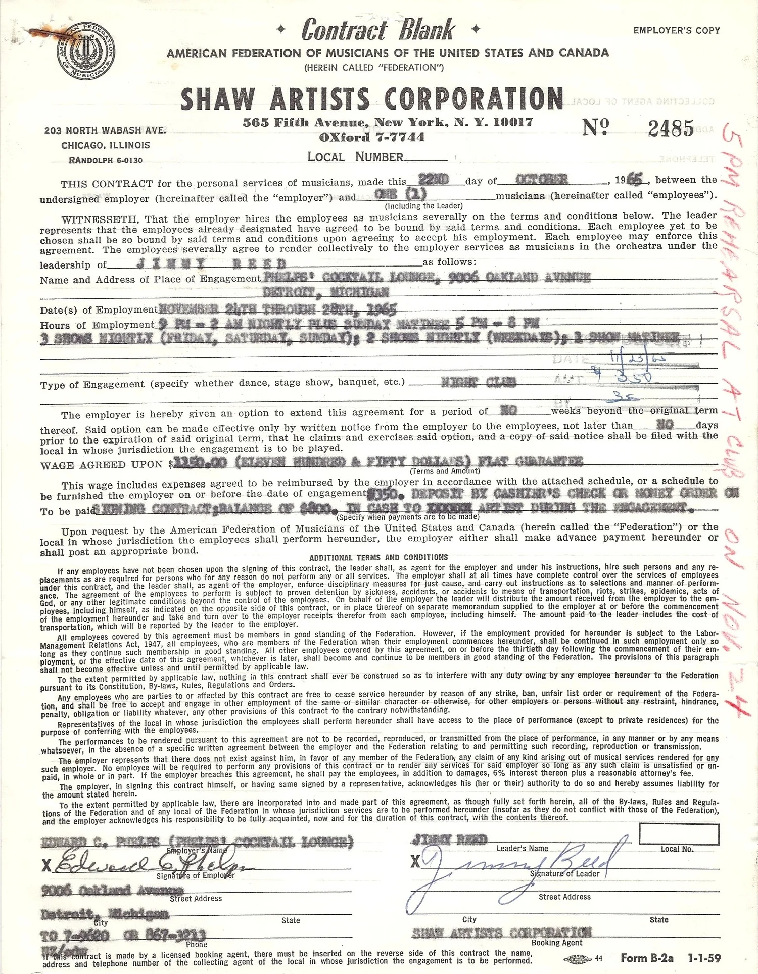 Jimmy Reed Contract & Promotional Photo. Jimmy reed signed contract and promotional photograph £495