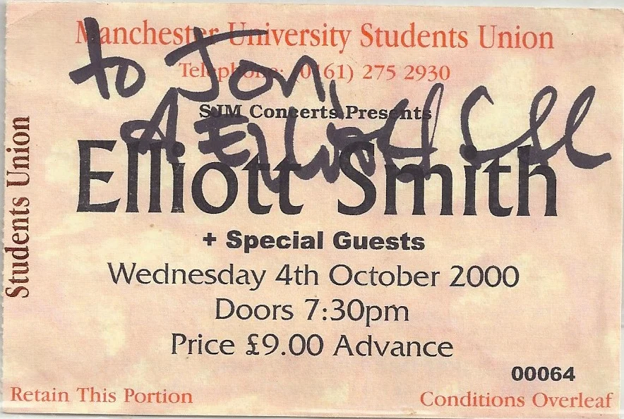 Elliott Smith- Ticket from Manchester University October 4th 2000. Signed by Elliot Smith £SOLD