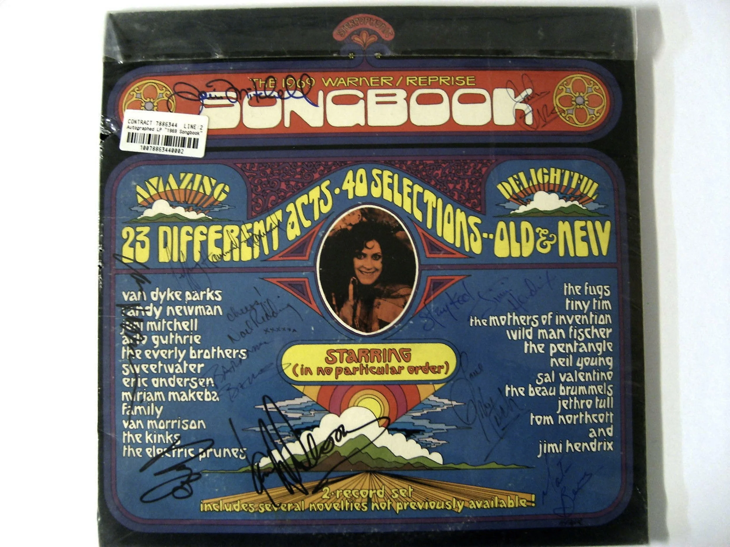 Unique Jimi Hendrix 1969 Signed Album LP- A genuine rare and possibly one-off item-The album is 'The 1969 Warner/Reprise Songbook' Signed by the Jimi Hendrix Experience- Jimi Hendrix, Mitch Mitchell and Noel Redding. LP cover is also signed by Joni Mitchell, Van Morrison, Neil Young, Jethro Tull- Ian Anderson, Barriemore Barlow, John Evan, Martin Barre and Jeffrey Hammond-Hammond £POA